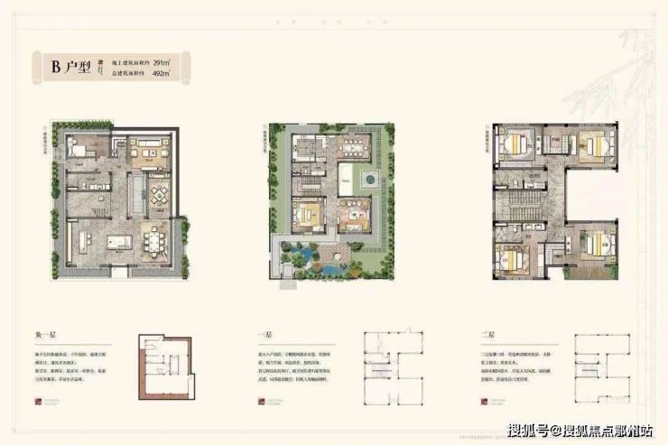 小独栋户型(492㎡,其中花园约245平)