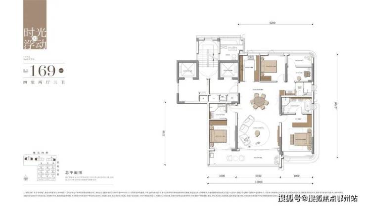 各个功能间尺度的全面升级。仅169方就做到了 南向面宽约13米,双联的超宽阳台进深约2米......的超级尺度。