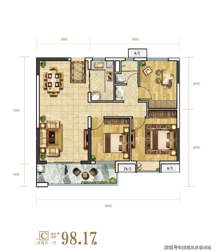 在售户型:98㎡-131㎡瞰景高层住宅(共7种户型可供选择)