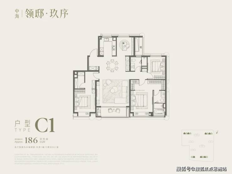 186㎡双卧套房上演全新空间哲学, 该户型巧妙地在面积分配上做出了革新,摒弃了传统一味追求宽敞阳台与客厅的做法,转而将这份奢侈赋予了两个南向的卧室套房。