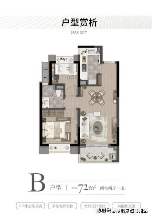 建面约88㎡3房:大虹桥范围不到90㎡的户型大部分都只做到2房,而虹桥灿耀星城该面积段实现3房功能性,让自住客户一步到位,也让该产品进入二手市场后具备降维打击的优势!