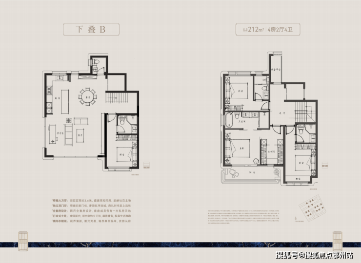 打造特色空间,契合不同生活方式 。下叠配套有庭院,为业主提供一方亲近自然的天地,可打造景观花园、休闲茶座等,尽享田园意趣。上叠配套有星空大露台,可打造为阳光房,阳光房融进孟莎式屋顶,线条优雅流畅,保证了外立面的协调性,业主可在此品一杯香茗,读一本好书,享受属于自己的静谧时光。