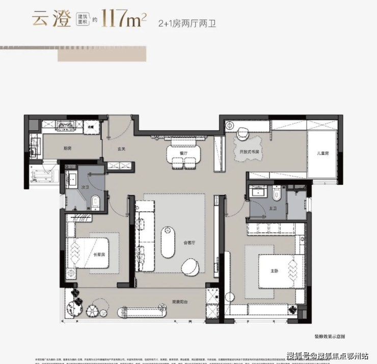【🌆 117m²高层户型鉴赏】 南向面宽超10米,约30平客餐厅约7.1米景观阳台,引景入室