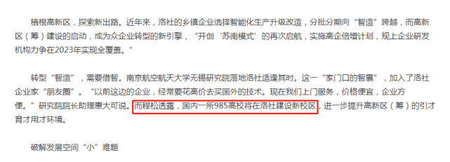 虽然目前还不知道这所高校的具体名称,但一个985就已经足以令人激动,要知道,高等学府在无锡一直是稀缺资源,现在只有经开区、滨湖区和锡东新城有三所高等院校,而这所 总投资20亿,占地面积达500亩的高等院校,意味着洛社将成为西锡的“教育高地”享受高度集中的资源。