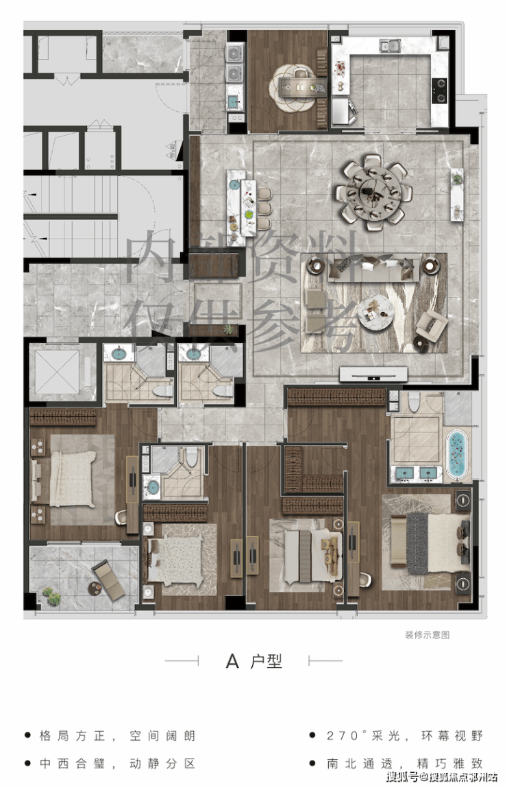 300多平的大平层真心赞!全玻璃幕墙采光超好,空间设计特别简约大气。最厉害的是做了3种不同风格的户型可选,四房五房都有。客厅大得能开派对,厨房也特别敞亮。最惊喜的是还带阳台,南向直接对着公园,下楼就能露营,这在杭州可是稀缺资源啊!