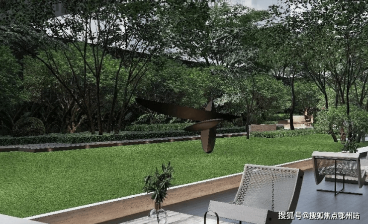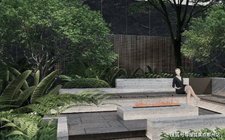 【三境|围垆词话】奢石雕塑与错落景观,形成独立的围合空间,于楼宇前营造奢享对景。密林漫步,散落的林间座椅,幽静的林下步道,疏密有致的宁静后院。