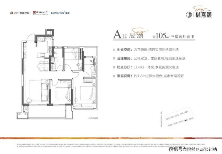 以建面约105㎡三房两厅两卫户型来看,起步即封神。
