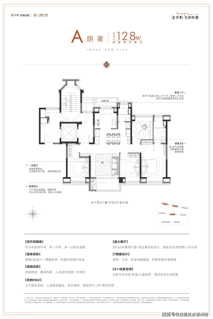 ◎ 真四开间朝南: 据统计, 2024年至今的上海新房市场中,建面在125-130㎡产品只有约9%做到了真四开间朝南,而地铁口的4房产品更是少之又少(数据来源于网络)。保利·虹桥和著建面约128㎡户型真四开间朝南,南向总面宽超13米,对比新房市场同面积段常见的10米面宽,采光和视野媲美千万级豪宅。