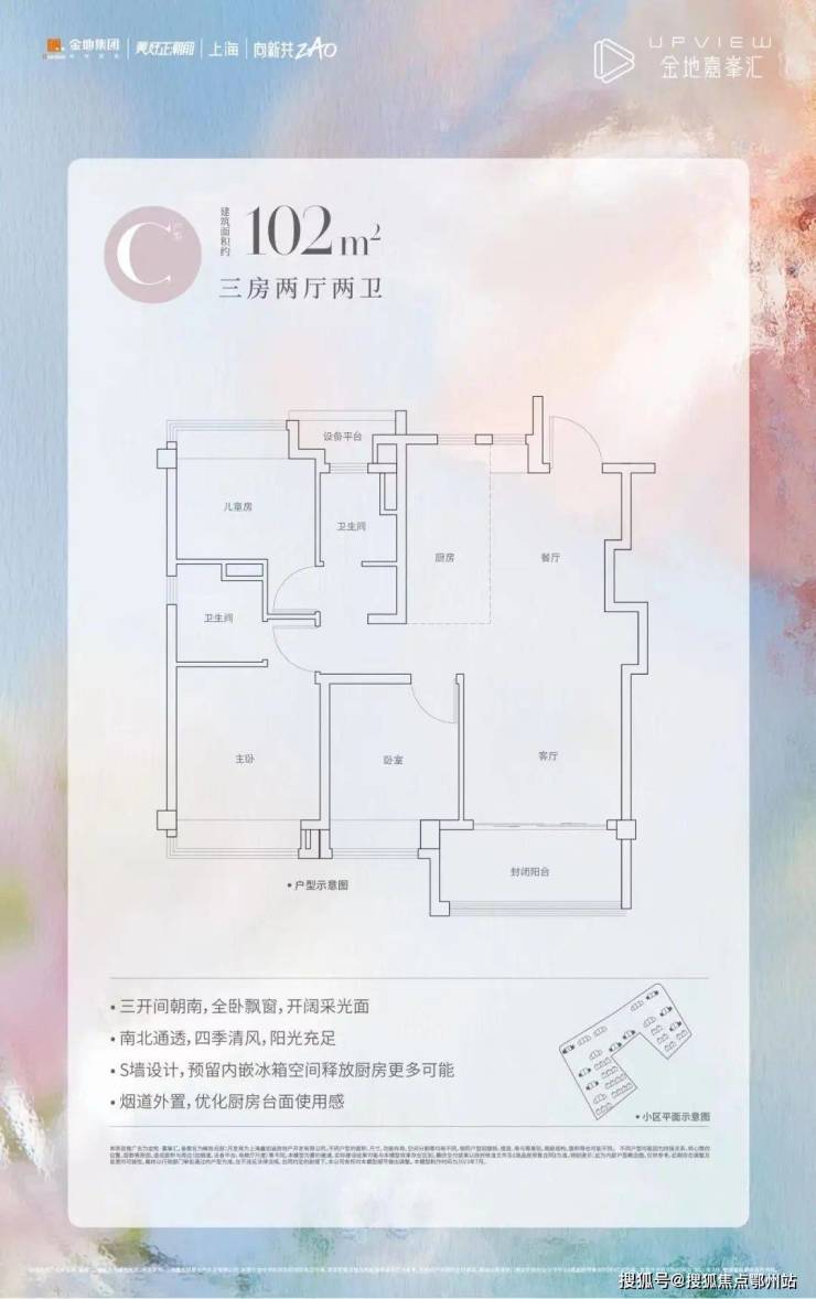 嘉定金地嘉峯汇售楼处电话:400-112-0302【售楼中心】位于嘉定菊园新区和硕路999弄,总户数约587户,项目主力户型有高层三房和叠加别墅,主力在售建面约89-102㎡3房。项目周边有双轨交覆盖,教育医疗学校丰富。