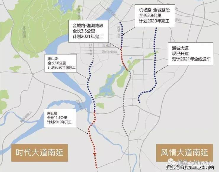 ①时代大道和风情大道南延线直达浦阳,开通后仅半小时左右融入滨江萧山和奥体等整个城南;