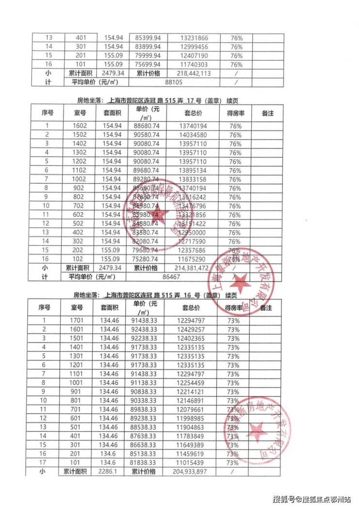 一房一价表