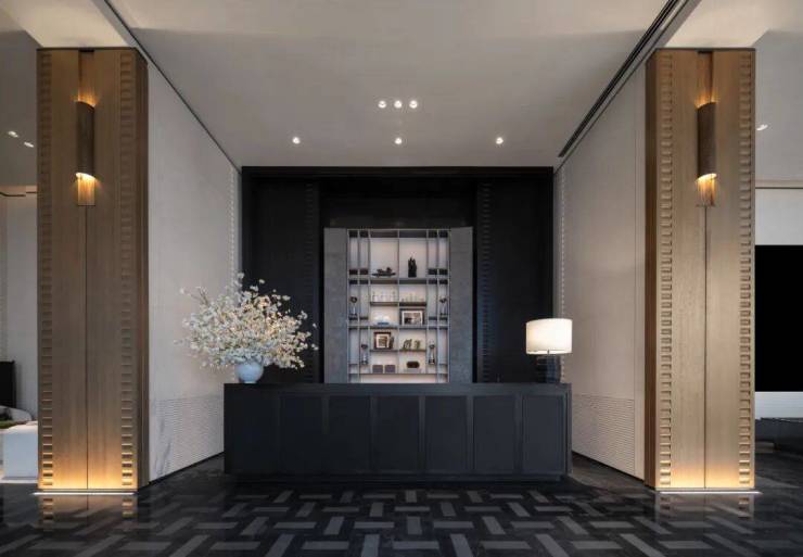 比如所见之处虽然都是名木和石材通铺,墙面精选保加利亚维纳多石材(北京宝格丽酒店同款)和翠谷幽兰奢石,精选昂贵的五株铁冬青寓意五福临门,七颗乌桕象征七星追月。