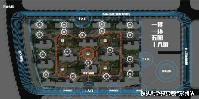社区采用人车分流设计,在景观规划上,上实望海采用“一界一环五园十八境”景观法则,侧写九大生活场景。