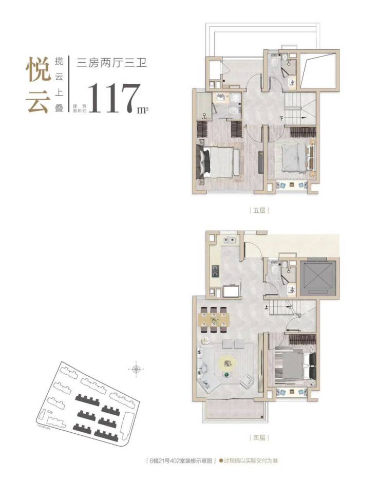 产品方面,项目以现代中式风格为基底,凝萃平坡结合手法,融入顶部挑檐及坡顶设计,全心呈现建面约117-129㎡ 中式叠墅、建面约 85-95㎡ 逸境洋房洞见大匠修为。