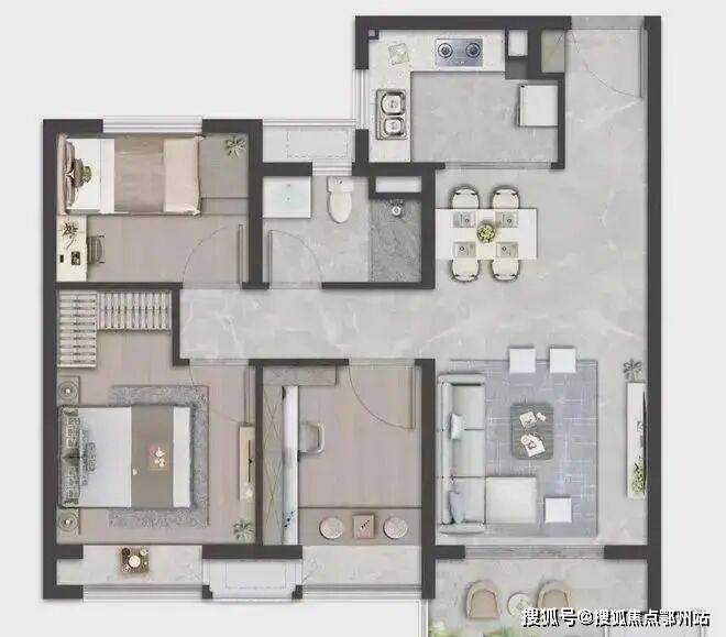 建面约89㎡3室2厅1卫:上车必备!