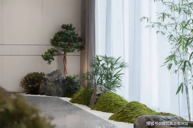 移庭入室,将蕴含东方美学的禅意景观引入室内,在与自然互动中,舒缓情绪,放下冗杂,收获内心的静谧与心灵的慰藉。每每观赏庭园,石、沙、砾、苔、篱,凡此种种由时间锻造的物件,都会触碰到一种美的心境与人生体悟。