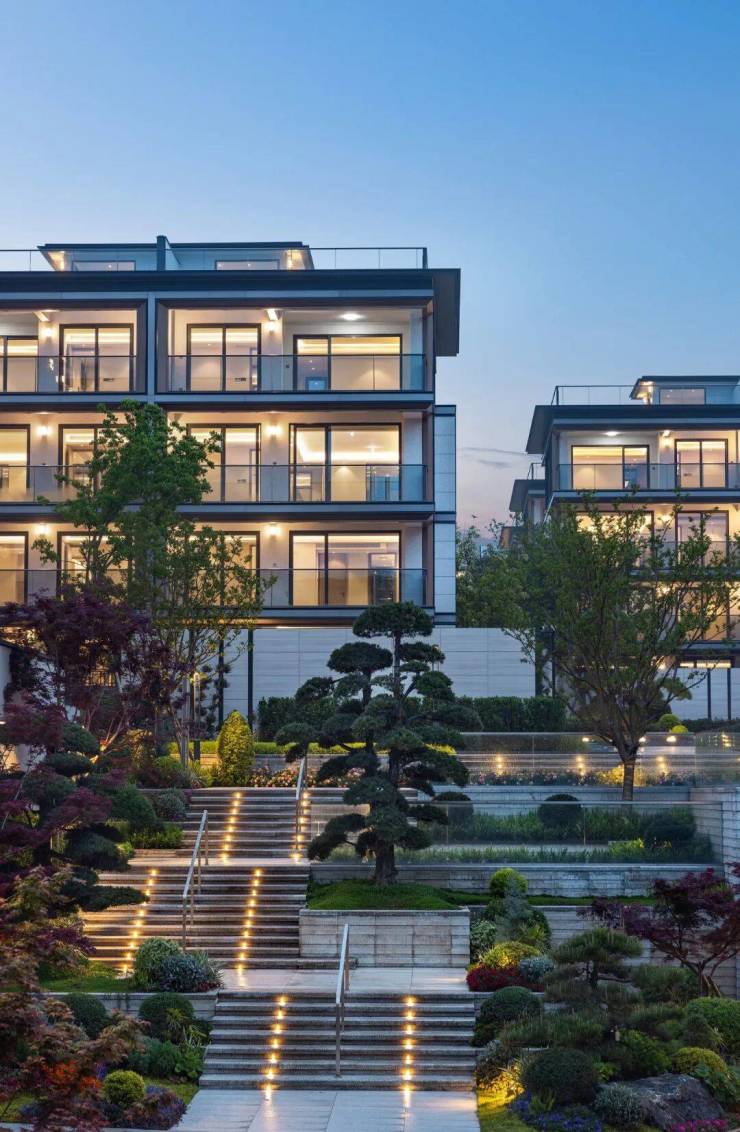 在台树约19米的高差,更显现出设计的灵动,夕阳映照下,让每户窗景呈现立体植被的光影流动,实现"推窗见景"的像素级把控。