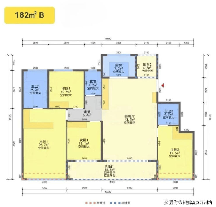 得房率: 166㎡含赠送得房率95%,182㎡含赠送得房率93%