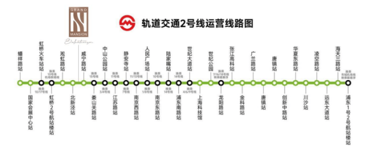 【地铁2号线】 直线距离威宁路站约800m,北新泾站约200m,东向2站中山公园,4站静安寺,6站人广,9站陆家嘴,直抵浦东国际机场,西向3站虹桥2号航站楼,4站虹桥火车站,是上海名副其实的国际线。