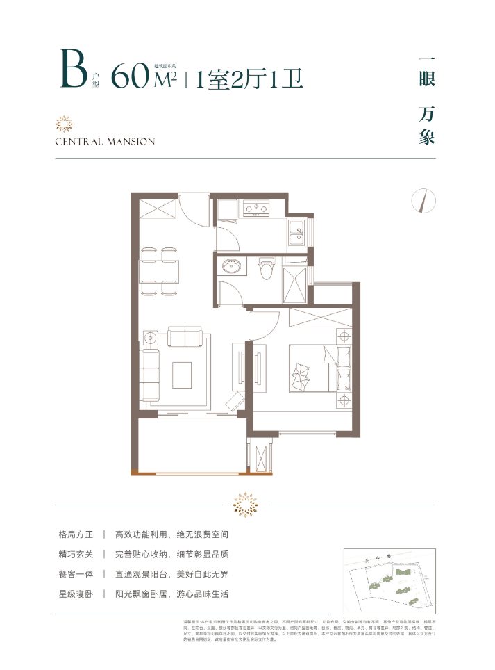 🔹 60㎡ 一房两厅一卫|入门首选(600-800 万)