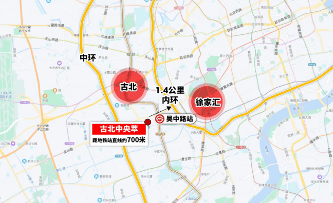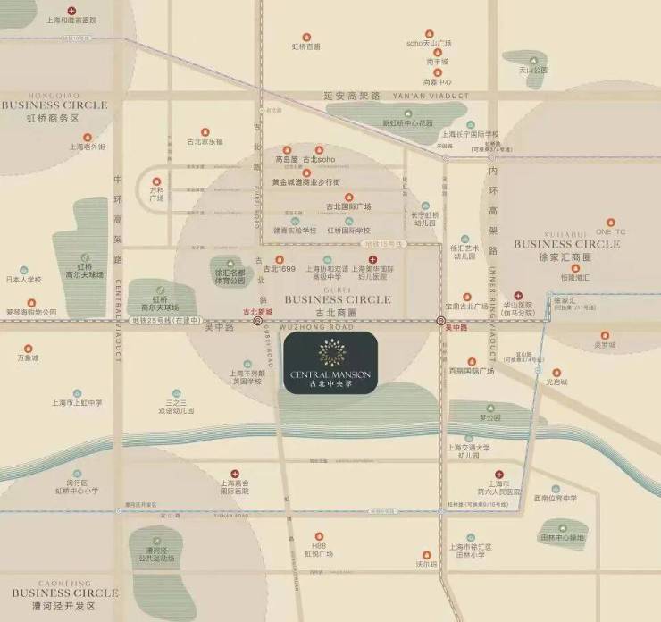 项目雄踞闵行金虹桥、内中环间,吴中路与古北路交汇处,直接共享古北国际社区成熟配套。