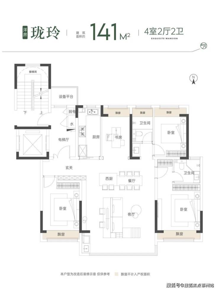 洋房:建筑面积约141㎡ | 4室2厅2卫,一梯两户/南北通透/双开间阳台/豪华主卧套