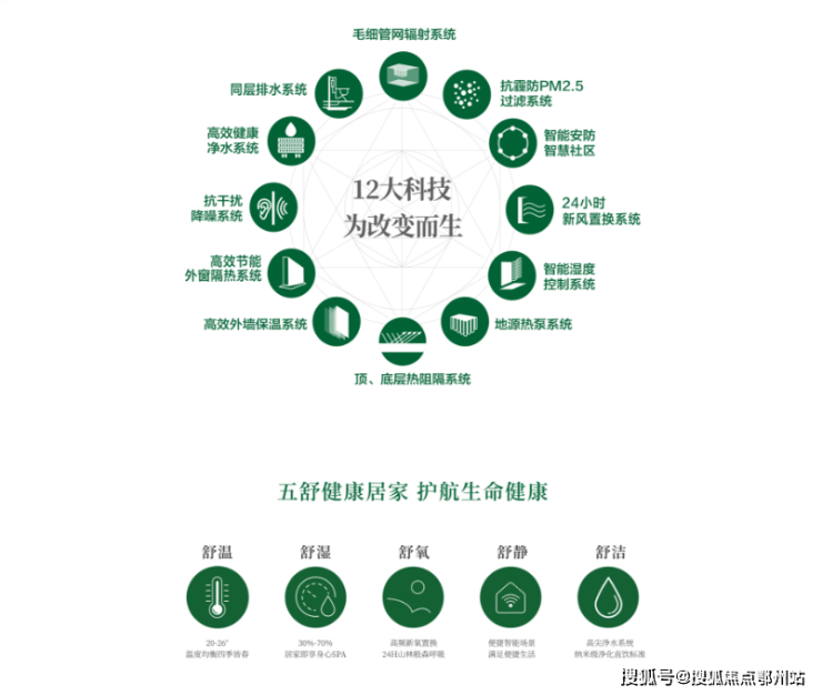 但作为金茂府系3.0迭新作品, 江湾金茂府将金茂引以为傲的「12大绿金科技」进一步优化,升级为 更节能、更安静、更安心的“五舒科技系统”。