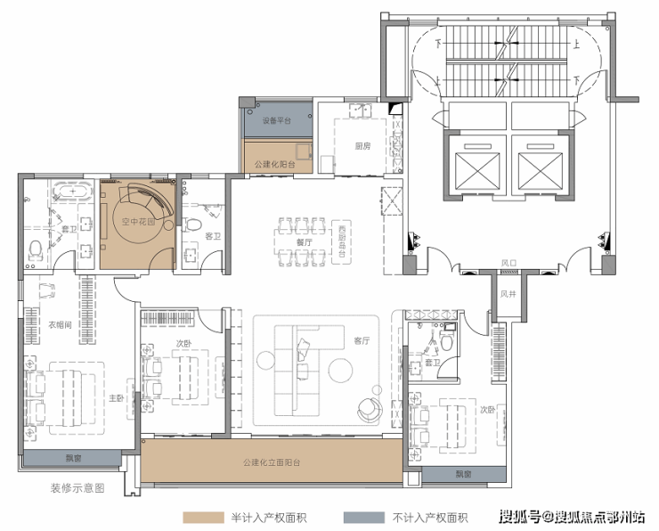 约9.8米一体化阳台、(步入式衣帽间、浴室双台盆)行政双套