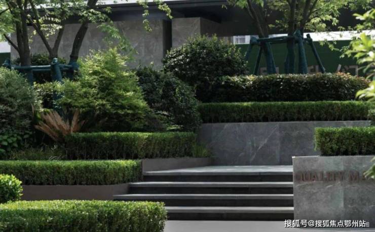 约40米入园门庭 ,采用 仿石材质与金属材质 精心打造。项目精挑细选的 罗汉松 矗立门前,带给业主犹如度假一样的归家体验。