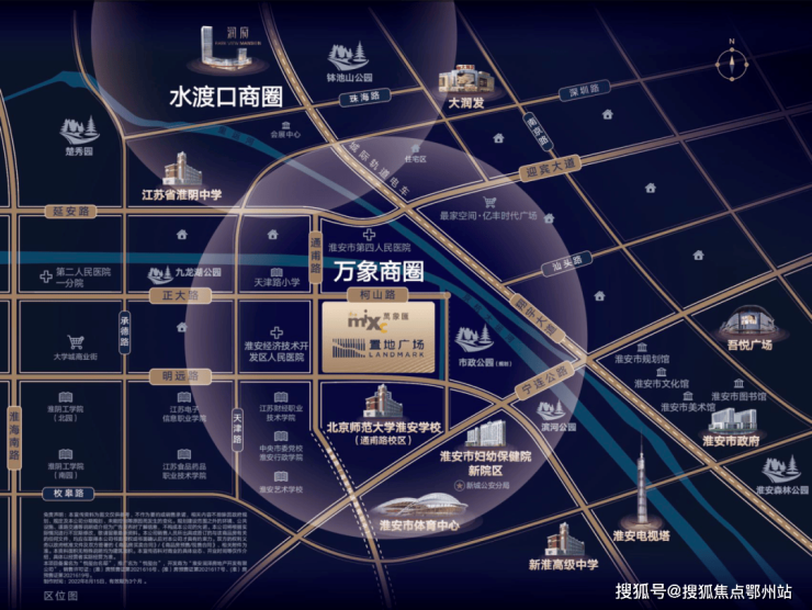 当我们谈论淮安置地广场的生活时,我们所指的不仅是内部与自然相拥的美好,亦有 以万象商业综合体为中心 辐射周边的繁华生活。