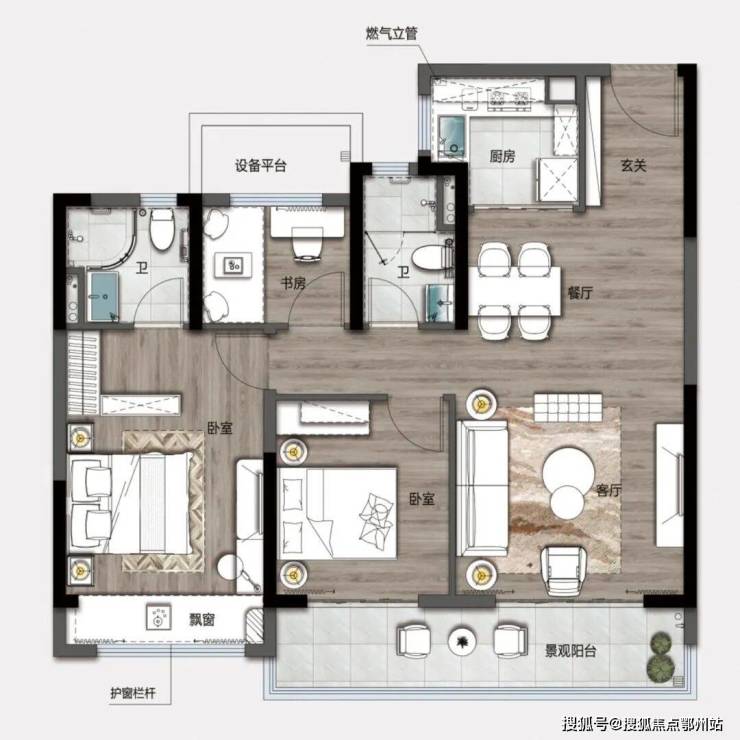 建面约98/104/106/110㎡ 3房2厅2卫👇👇
