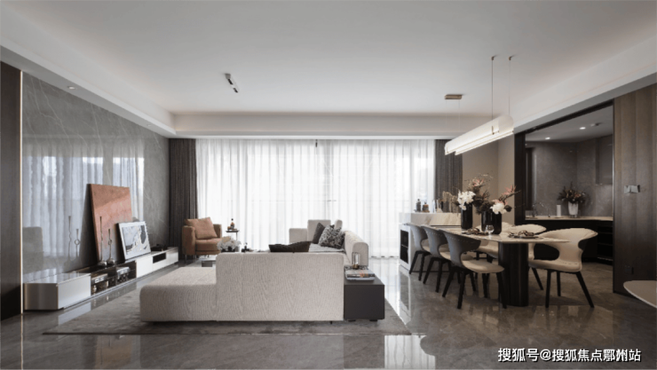 整个色调是高级灰,搭配金色系金属装饰。和外立面的香槟金+浅灰色遥相呼应。色系简单而高级,充分诠释了什么是!!