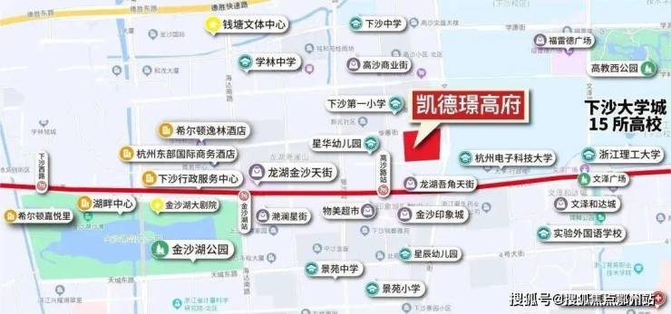坐落于杭城新经济与文化中心——杭州钱塘区的凯德·璟高府,地处下沙高价值板块——金沙湖,毗邻地铁1号线高沙站,坐拥繁华商圈的全方位生活配套,是金沙湖CBD核心区不可多得的高端改善型住宅精品。
