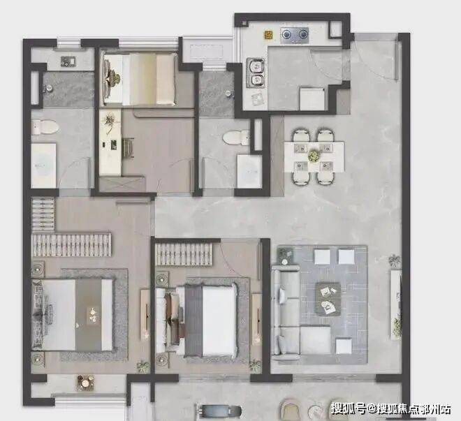 二期18#、24# 103㎡精奢小户型全部于空间、精装方面进行了全新升级,带来更高的居住舒适度。