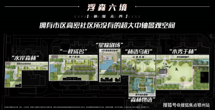 社区将自然意趣与自然景观融入园中,呈现星光森境的景观,以 超长绿廊中轴为依托,缔造 浮森六境璀璨盛景。