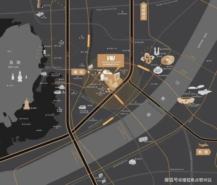 新世界城市艺术中心坐落于环杭州湾城市门户要位的杭港高端服务业示范区——杭州望江新城,作为杭州城站站城一体“新门厅”,望江新城向外辐射长三角片区各中心城市。