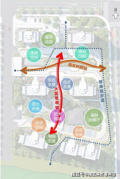 景观设计:小区主要出入口位于西侧,内部设有健身漫步道、中轴景观带、童趣天地室外建设设施、集中绿地等景观,打造出公园式景观,将自然引进家,营造出舒适宜居的社区环境。