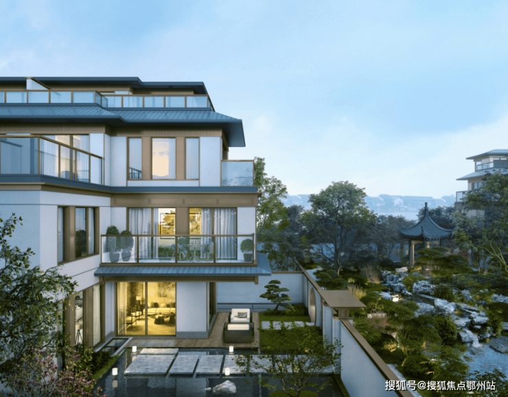 世家门仪、青石地雕、柔和屋脊、戗角飞檐,为杭州定制匹配当代家族的 宋风大宅 。景观上,叠石成山、筑池理水,以双轴五进十巷营造可赏、可游、可居的 江南诗画园林 。