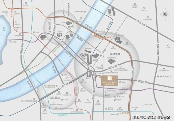 周边大小“莲花碗”、T - ONEMO(在建)、奥体中心、奥体印象城、滨江银泰城、杭州 SKP(在建)等地标建筑星罗棋布,构建起一个资源高度聚集的城市封面区域。同时,项目往西约200米便是重要交通干道风情大道,依托三横两纵的便捷路网,能够快速通达滨江区政府、万象城、来福士、市民中心等城市关键节点,交通优势显著。