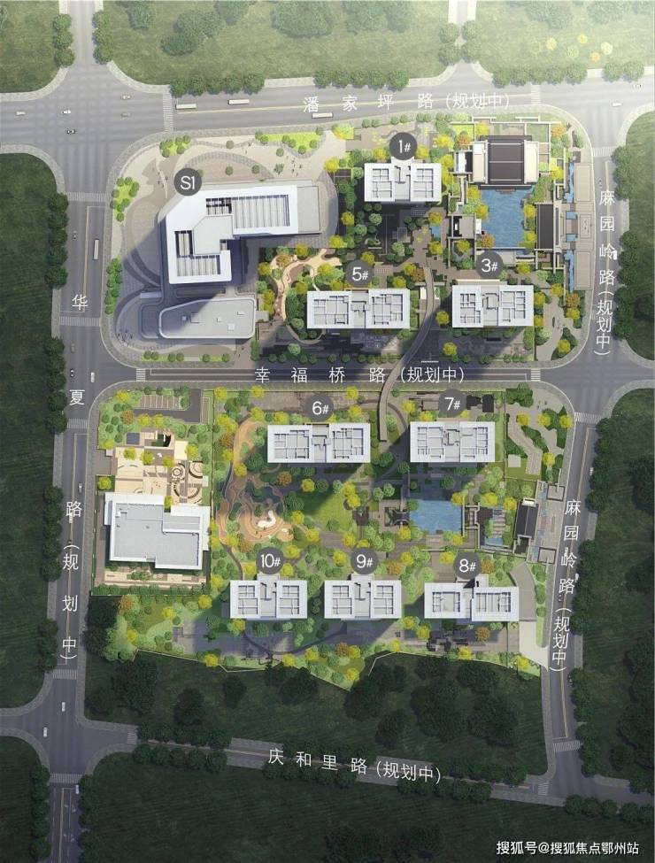 建发养云总共8栋住宅,分为南北两个地块,中间有空中廊桥相连。