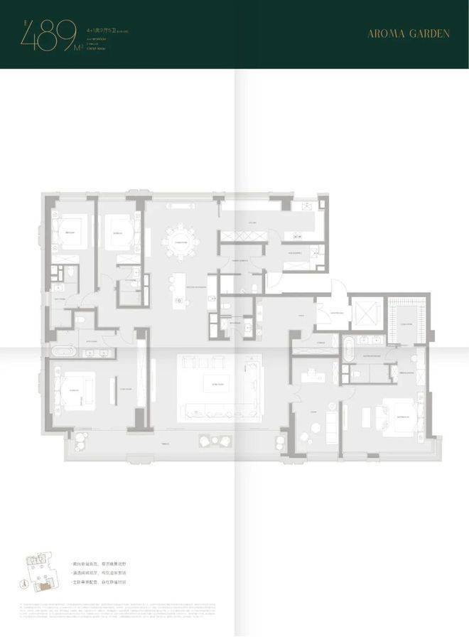 491㎡户型:南向面宽 26 米、双主卧、中西双厨、家政动线独立