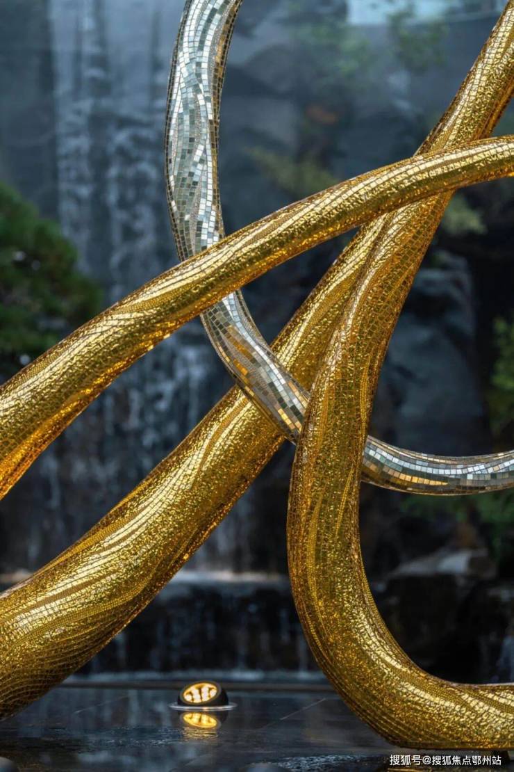 社区入口的施华洛世奇“金韵云光”雕塑,是“九相园林”的开篇仪仗 ——8.2万颗水晶与4.3万片金箔手工缀合,日光下碎光流转。循光入园,动线随景致自然延伸:600吨中国黑原石叠筑的7米飞瀑水声渐起,200万级300年黑松自成景致,搭配鸡爪槭、乌桕等名贵绿植,光影、水声与松影交织,让每一步游园都藏着层次与意趣。