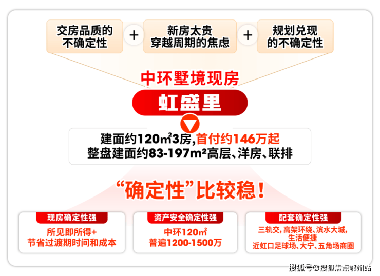虹口虹盛里,便是当下“确定性”尤为靠谱的选择—— 当下首付最低15%,首付仅约146万起 就能在中环旁入手建面约120㎡的3房墅境现房!