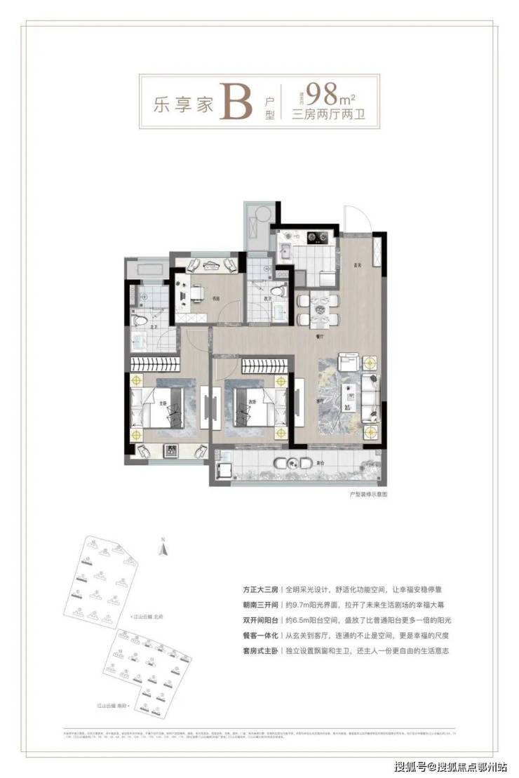 📐户型:三房88/98平,四房120/128平