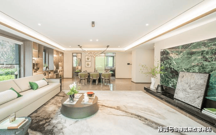 看一眼外立面, 白色石材、香槟色的木纹铝板、大面积玻璃 的拼接组合,怎么看都不像一个门槛只有400万+的低密叠墅。