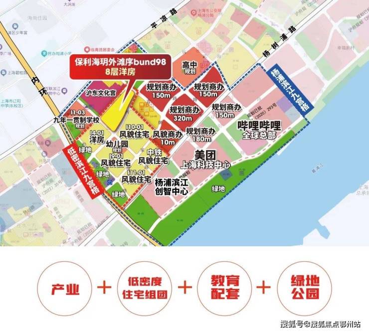 不仅雄踞杨浦滨江九宫格,咫尺科创大厂,从小地段看 bund98又镶嵌在滨江难得的一个低密九宫格内。