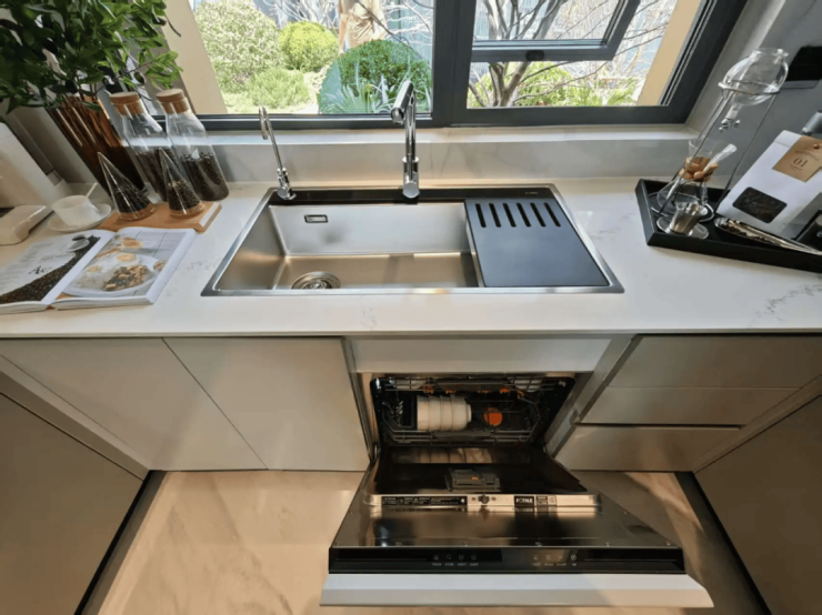 方太洗碗机,是16套大容量,还能与水槽结合,可以节省一组600柜,轻松洗净重油顽渍。