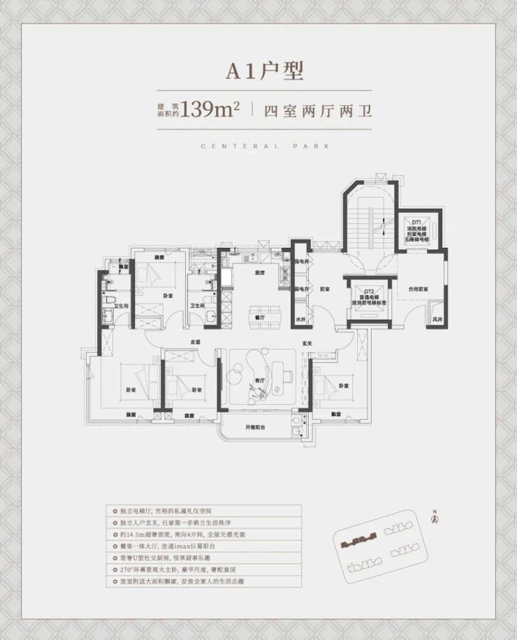 建面约139㎡4房户型,套数不多,但产品力绝对惊艳。