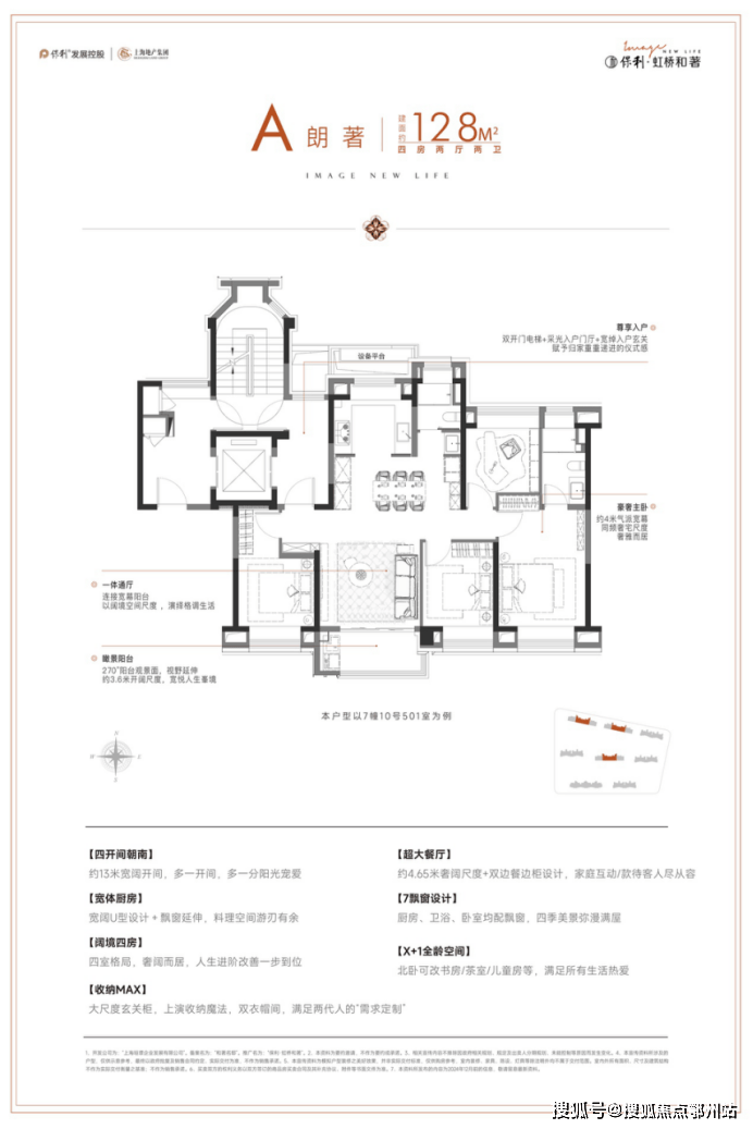 建筑面积约 128㎡的户型,堪称精致小豪宅的典范。位于地铁口的四房 设计本就稀缺,而该户型更是以其卓越的设计脱颖而出:四开间朝南 ,搭配约13米的宽阔面宽 ,将充沛的自然光线引入室内;主卧配备270度全景飘窗 ,加之南北通透的套房 设计,在同级别户型中实属罕见,不仅确保了居住的舒适度,更彰显了主人的尊贵身份。