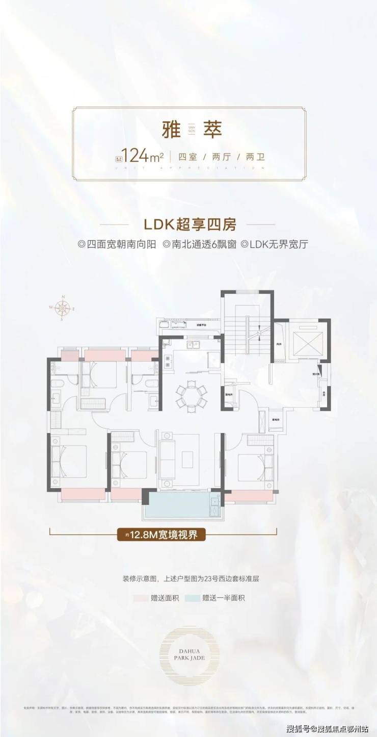 建面约124㎡的4房2厅2卫: